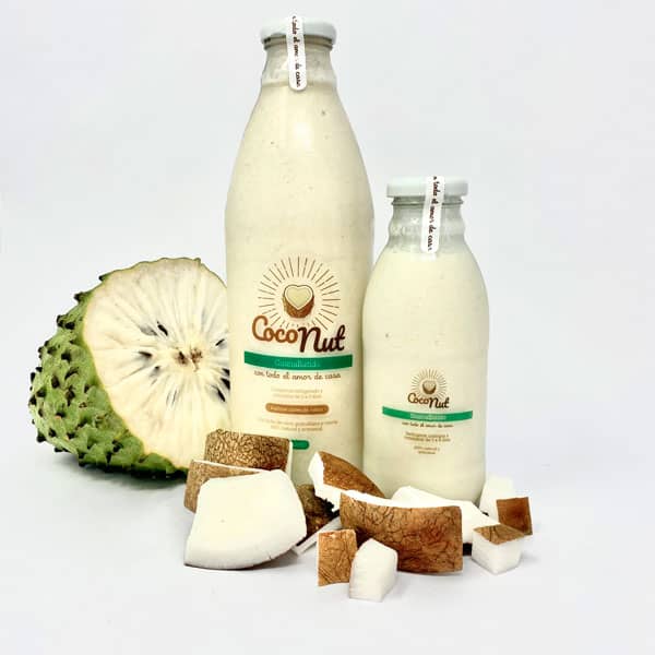 Con el único y delicioso sabor de la guanábana. Un batido vegano hecho con bebida de coco, una pizca de canela y aceite de coco en botella de vidrio. Rico en vitamina C y vitamina A.