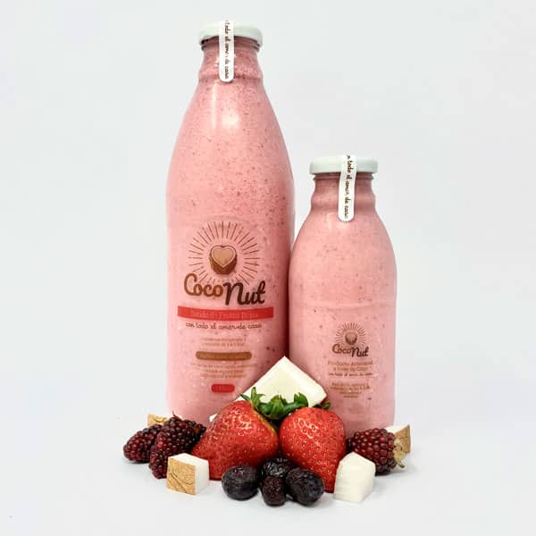 Toda una experiencia llena de vida y sabor. Este es nuestro Batido Vegano Frutos Rojos. 100% natural y sin azúcar añadido, en botella de vidrio. Se trata de una mezcla perfecta de bebida de coco, fresa, mora, agraz y arándanos, junto con un toque secreto de aceite de coco y stevia natural.